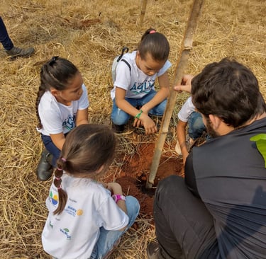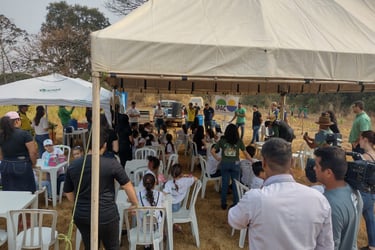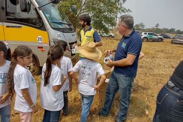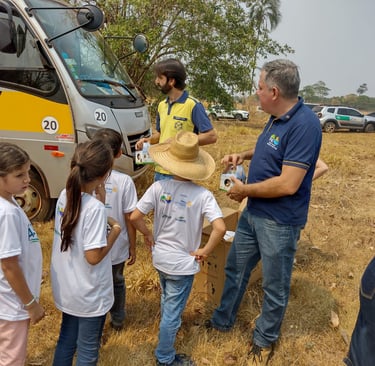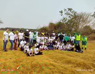About 20 children from the Diva Martins Junqueira Municipal School participated on Tuesday morning (09/17/2024) of the environmental preservation action with the first source of the Ararão River, located in the district of Progresso, in Tangará da Serra.