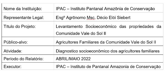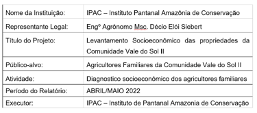 The “Future of the Community” activity, like the “Wailing Wall” workshop, was developed by IPAC – Instituto Pantanal Amazônia de Conservação, using the methodology of the Cultivating Good Water Program of Itaipu Binacional, through its representative and speaker Jair Kotz, and had the support of the Public Prosecutor's Office of the State of Mato Grosso and the Association of Family Farmers Vale do Sol II.
