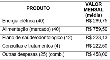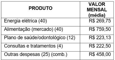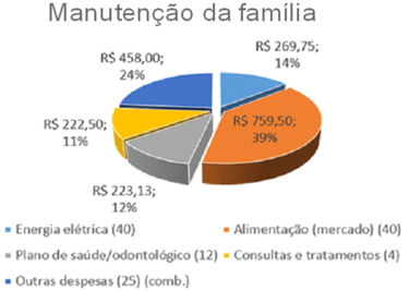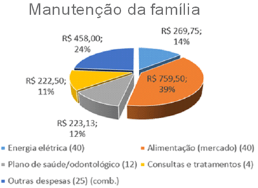 From the data collected, the following conclusion was reached regarding family maintenance expenses: food is the most important at 39%, followed by other expenses, which mainly include fuel costs, then electricity, which represents 14%, and finally health insurance costs (12%) and medical treatments, exams, hospitalizations and the purchase of medicines (11%).