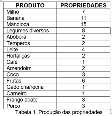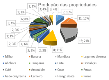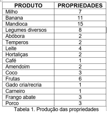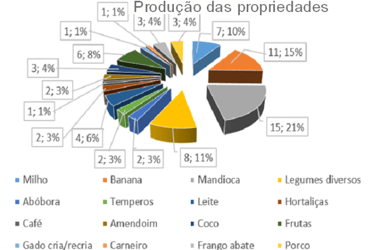 This research surveyed 40 properties measuring 4.8 hectares each, totaling approximately 192 hectares, excluding a percentage corresponding to the legal reserve area. In this sense, each owner was asked how he or she uses this space. Based on the study of the 40 properties analyzed, the following results were obtained: 109.9 hectares (57%) are used as pasture, and this is justified by the fact that it does not require much labor to care for the animals and the return is constant through milk and dairy products, produced by the herd. In addition, it is easy to sell in case of need. The remaining 82.1 hectares (43%) are used for planting vegetables, fruits, legumes and spices. According to calculations made using Google Earth, the Vale do Sol II community has an area of 980 hectares, of which only 192 hectares were surveyed. The remaining 797.4 Ha are areas for sale, closed areas preventing research, permanent preservation areas, roads, unproductive areas, dams, the association's headquarters and some private reserves.