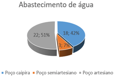 In this research item, the owners were asked about the origin of the water that supplies the residence, the other structures on the property (chicken coop, pigsty and vegetable garden) and, in the case of irrigation, if there was any. Of the 40 properties, 22 (51%) have an artesian well and 18 (42%) use a country well and only 3 (7%) properties use the semi-artesian well for the house and the country well to supply the other structures on the property.