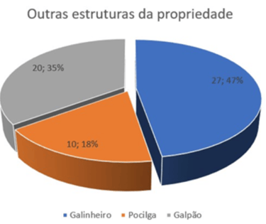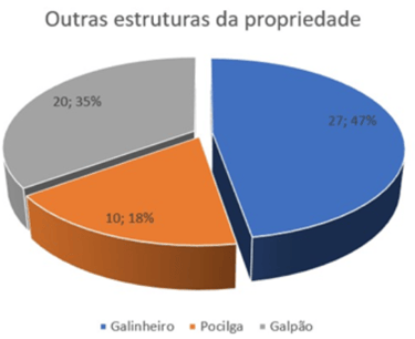 Most properties, with the exception of two or three, have a small or medium-sized structure for raising chickens and pigs, as well as sheds for storing tools, production and/or equipment used on the property.