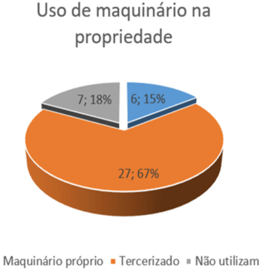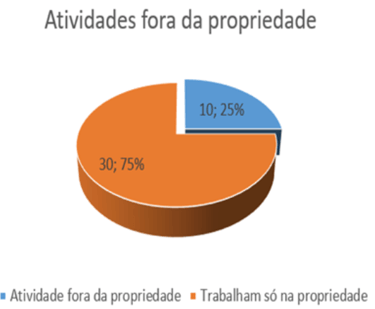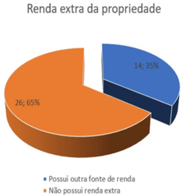 From the answers expressed in the graph, it can be concluded that 14 properties (35%) have some source of extra income, such as tractors, tractors and implements that generate some type of income, and 26 properties (65%) live exclusively from production.