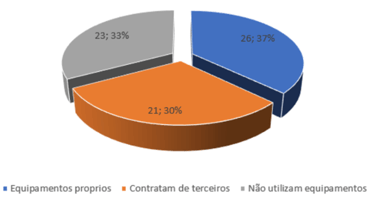 The properties use tractors, implements, tractors, shredders and other machinery to facilitate field management. Owners and tenants were asked whether they had their own equipment or used third-party equipment for the service. Of the 70 properties, 26 had their own equipment, 21 hired third-party services and 23 did not use any equipment at all.