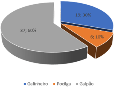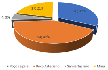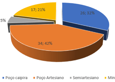 Regarding water collection on the property, we asked whether the water used came from a well, artesian well, semi-artesian well or mine. From the responses we gathered the following data: 26 used a well, 34 had an artesian well and 10 used a mine for household consumption and a semi-artesian well for other structures. This is explained by the fact that the pH of the water from the semi-artesian well is not ideal for human consumption.