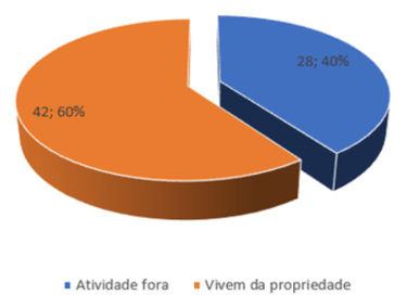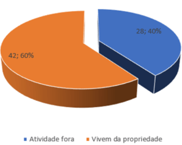 Another item asked whether anyone in the family who lived on the property carried out any activity outside the property as a way of increasing the family income. Of the 70 families, 28 (x%) people carried out some activity while 42 (X%) lived exclusively on internal income.