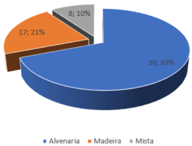 Regarding the structure of the houses on the properties, the majority (56) are built in masonry, with an internal bathroom and external finishing. Others (17) are built in wood and only 8 houses are of mixed construction.
