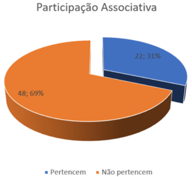 The interviewees asked whether the owners were members of any association or union. From the responses, we obtained the following data: 22 (31%) belong to an association and 48 (69%) do not. Among those who do belong, the majority are cattle breeders and are affiliated with the Rural Union and some have poultry farms and are associated with the Poultry Farm Association. Those who do not belong to any entity demonstrate that they have belonged in the past, but, dissatisfied, they left.