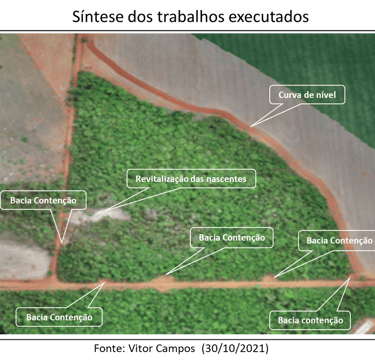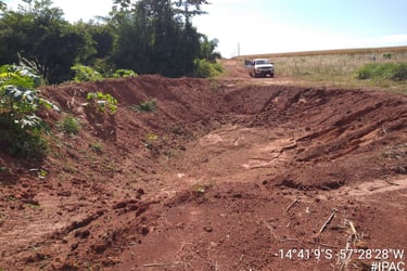 The aim is to identify and propose technical projects for road redevelopment, integrated with soil conservation and training of the local team of operators for their subsequent implementation. This project aims to revitalize the Queima-pé and Ararão river basins, working specifically on the springs. This work to divert the road was carried out at the 060 spring, which is a body of water that flows into the Queima-pé. Diverting the road near springs is a fundamental measure to protect the quality and quantity of water, which consequently helps us to preserve vegetation and biodiversity, minimize erosion and sedimentation, and ensure compliance with environmental regulations.