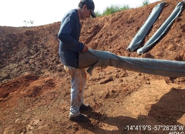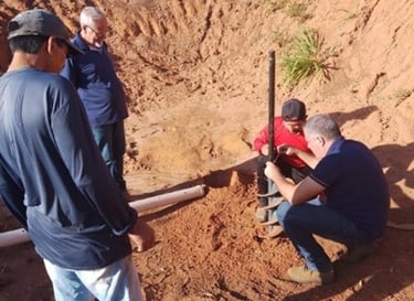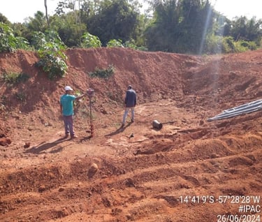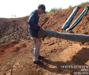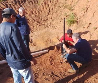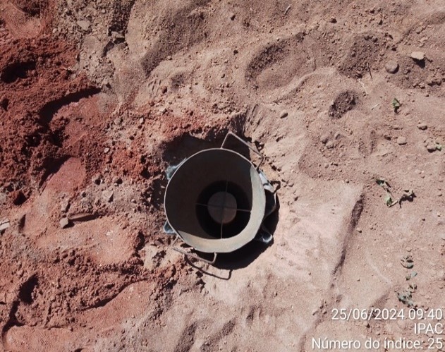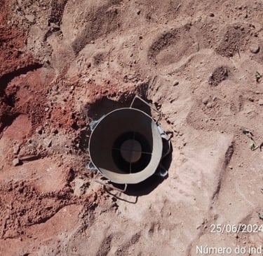 To install the Groundwater Recharge Intensifier (IRLF), a portable drill is used, equipped with a drill, for manual use and is powered by gasoline (for greater power). Vertically for each IRLF, 2.20 m of soil was drilled. After drilling the soil, we proceeded with the installation of the Groundwater Recharge Intensifier (IRLF). The Groundwater Recharge Intensifier (IRLF) consists of a perforated PVC pipe and a geotextile blanket. Crushed stones are placed in the space between the PVC pipe and the geotextile blanket.